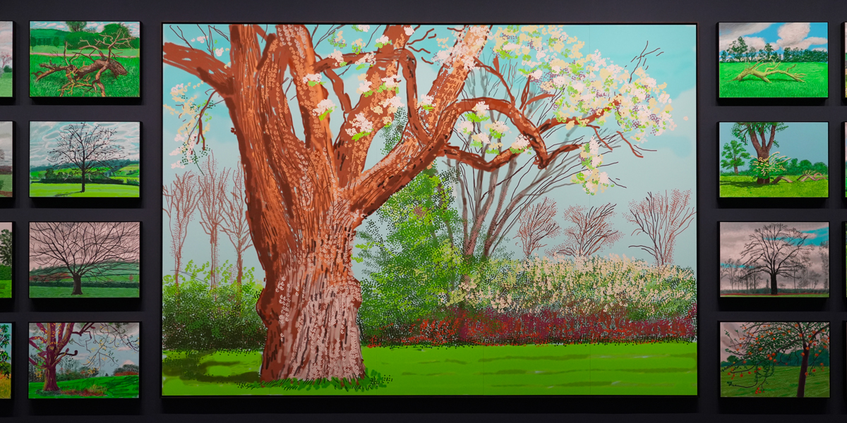 Vue de l’exposition David Hockney 25 à la Fondation Louis Vuitton © Benoit Gaboriaud 8 avril 2025 David Hockney souffle un air de Normandie à la Fondation Louis Vuitton 1200 × 600